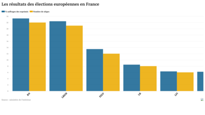 Les élections européennes ont confirmé le retour du RN (23 %) comme principal adversaire d’Emmanuel Macron (22 %). Hors de ce duopole, le reste du paysage politique est explosé, avec une abstention de 49 %. Les écologistes sont en tête à gauche (13 %), LR s’effondre (8 %).