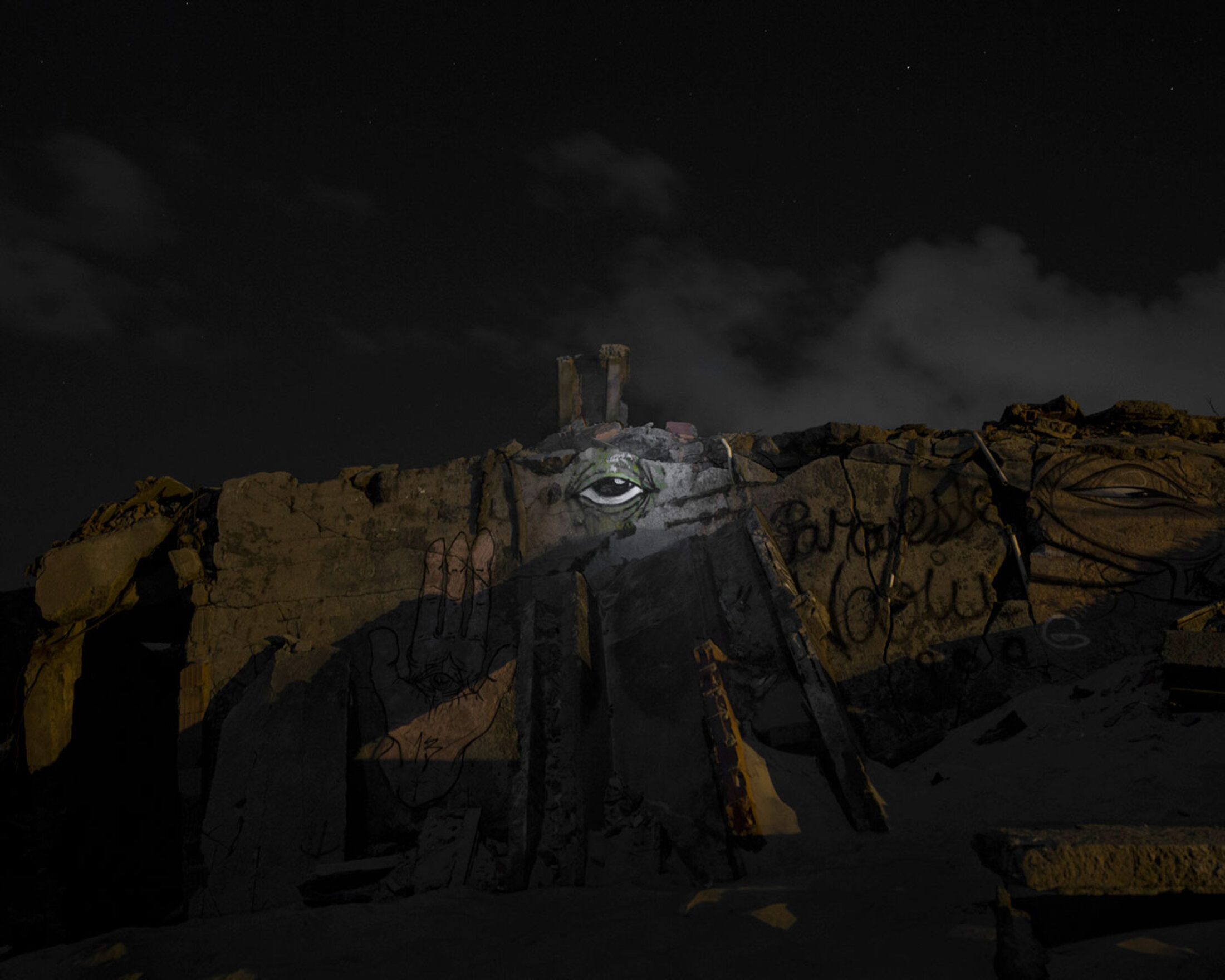 Atafona, 2 mai 2015. Le titre du projet de Felipe Fittipaldi, Eustasy, vient de la définition du niveau eustatique de la mer, qui est la distance entre le centre de la terre et la surface des eaux. Ici, le plus grand hôtel de la ville, un bâtiment de trois étages, a disparu après un ressac de 2008.