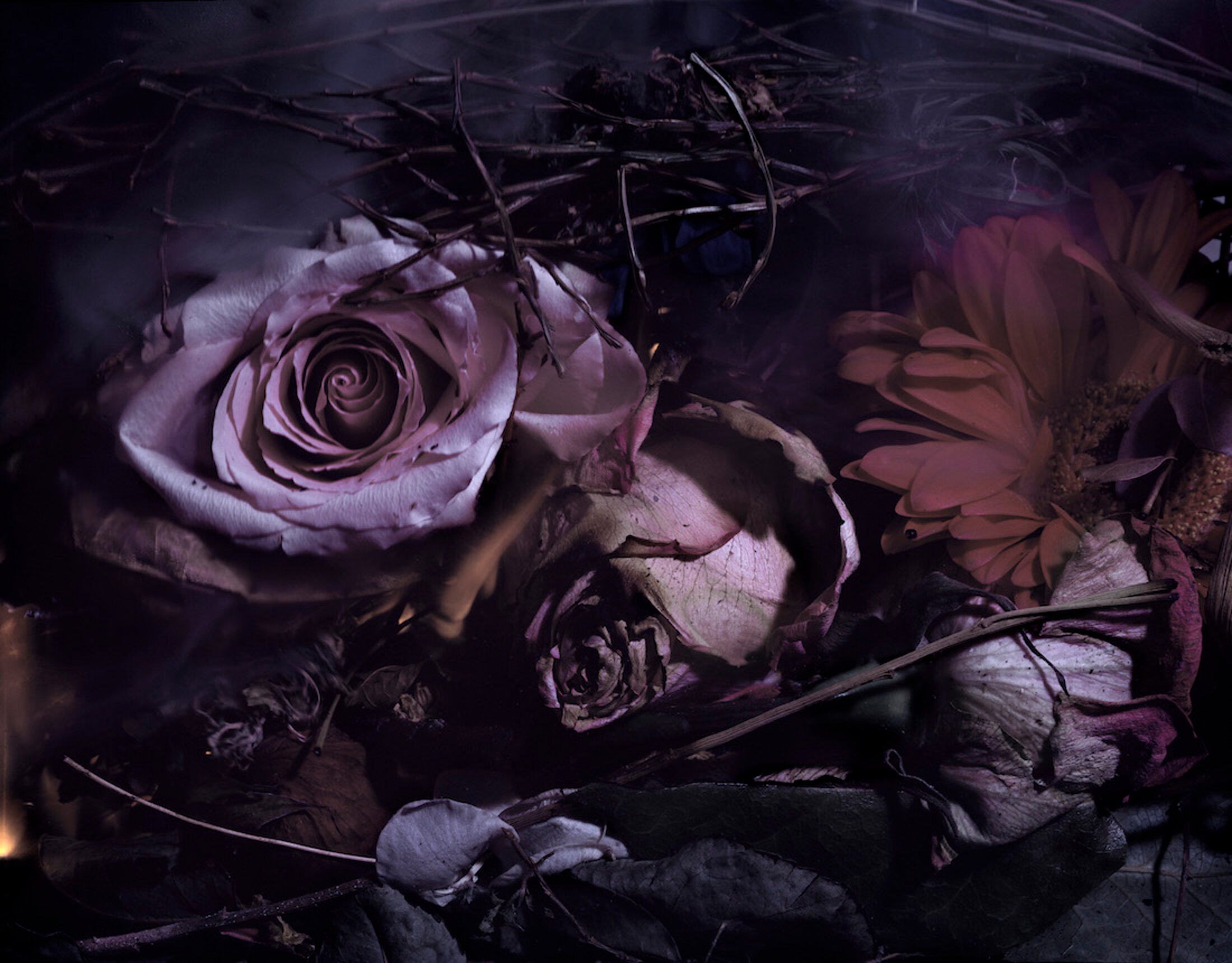 Pour ses 10 ans, Mediapart vous offre 10 bouquets de fleurs… Des bouquets saisis par Hervé Baudat, que l’on connaît ici pour son remarquable travail en noir et blanc sur la vie dans les centres Alzheimer, les villages de Roumanie… Ne se séparant presque jamais de son appareil argentique, il raconte : « Au petit matin, je partais acheter des fleurs, n’importe lesquelles. Je les ramenais vers mon petit appartement, les entassais sur l’évier ou dans un aquarium bon marché. Sur le dépoli renversé de ma chambre 4/5, au travers des pliures et des veines multicolores, je guettais l’apparition de robes végétales aux formes imprécises. » Ce passe-temps est exposé en ce moment à Paris en format 50×60 cm, avec en sus deux photos de 1 mètre de large.