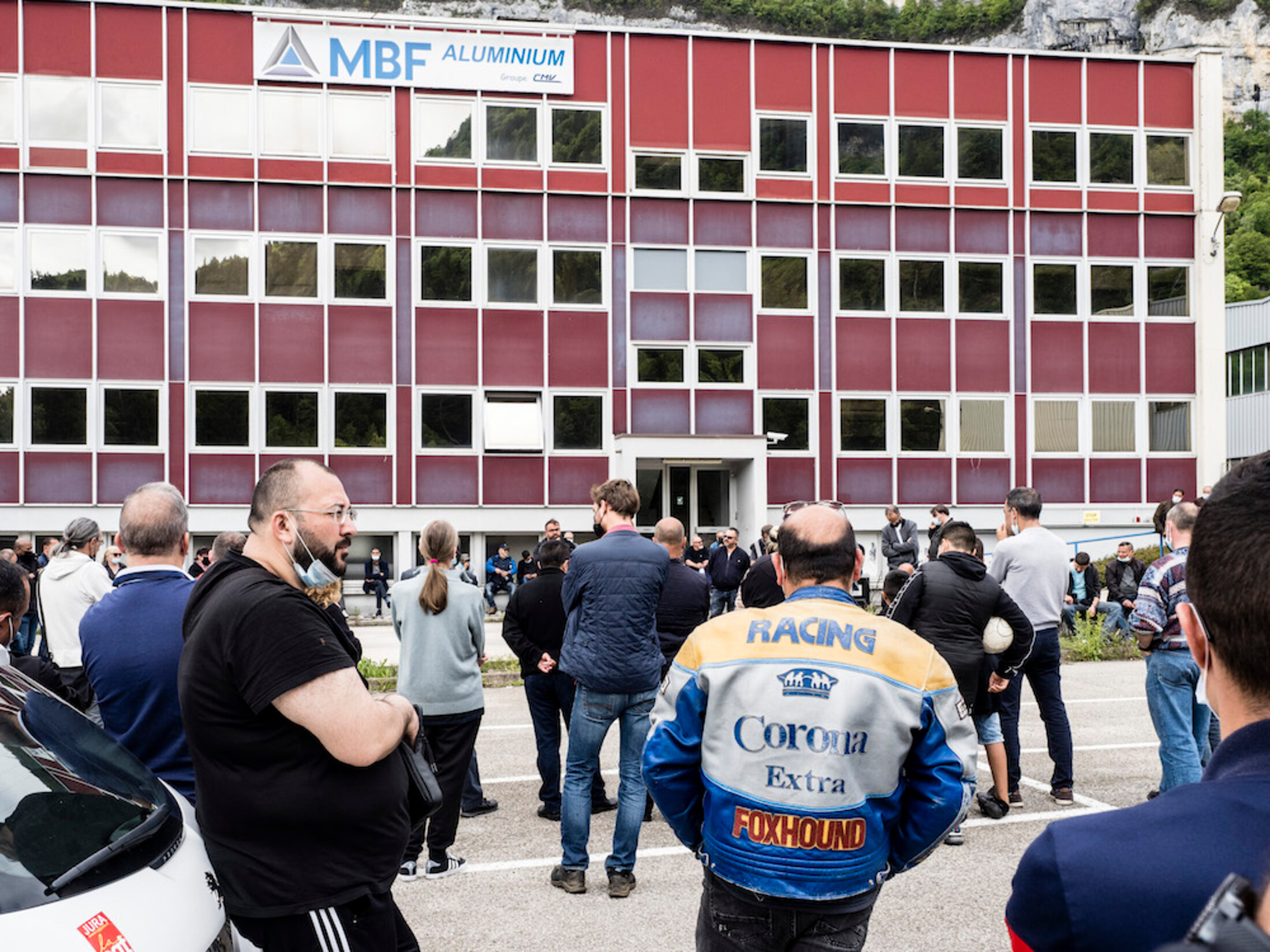 Mercredi 26 mai 2021, Saint-Claude. Assemblée générale au 56e jour de grève des salariés à l’usine MBF Aluminium, en redressement judiciaire. La veille, le tribunal de commerce de Dijon accordait un délai supplémentaire jusqu’au 15 juin 2021, pour permettre à un éventuel repreneur de présenter un dossier complet, tandis que le président de la République lui-même validait le principe d’un consortium public-privé pour sauver la fonderie du Haut-Jura proposé par la région Bourgogne-Franche-Comté, qui entrerait au capital de l’usine.