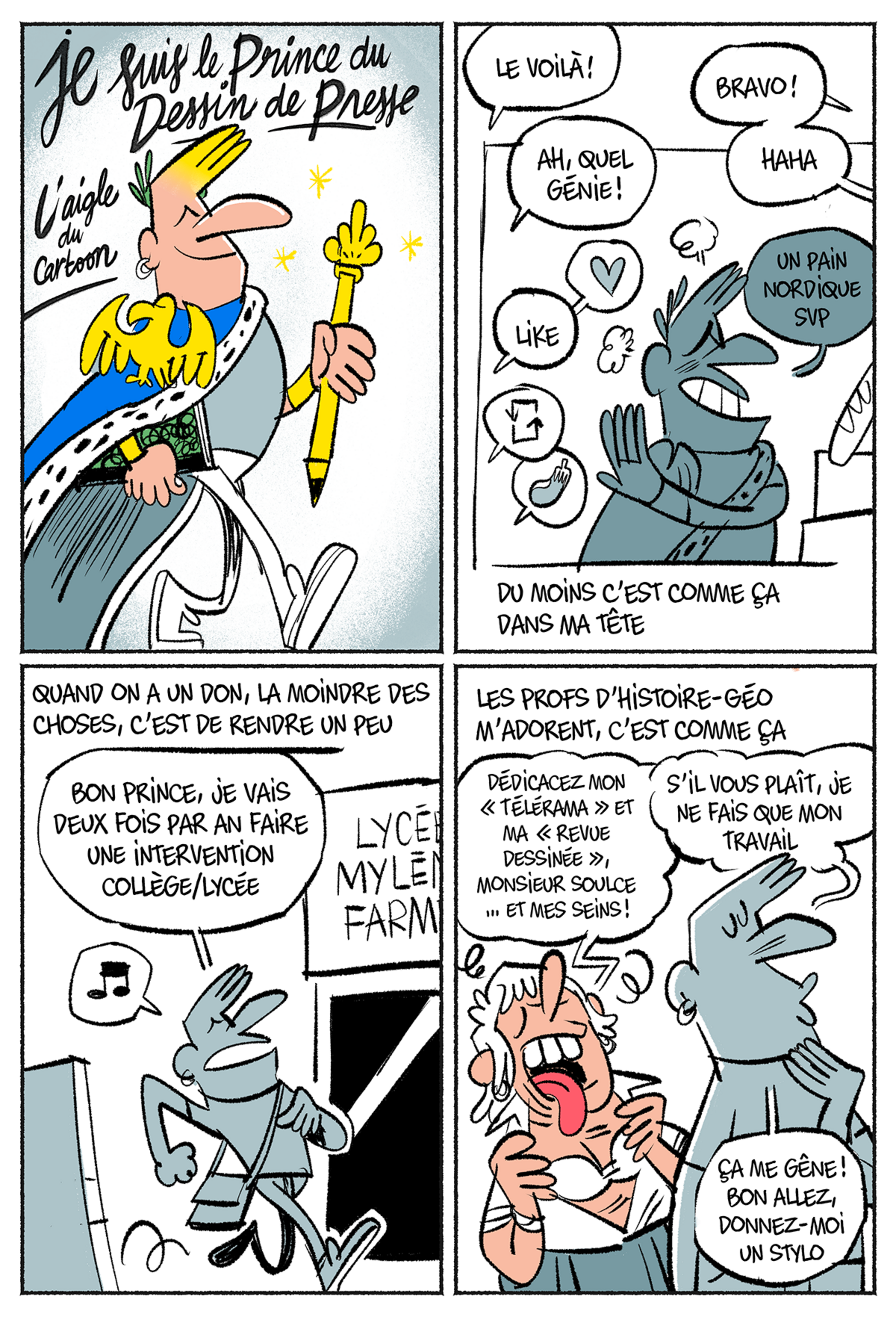 En visite dans un lycée, Thibaut Soulcié enfile son costume de professeur et organise un atelier où les élèves doivent élaborer leur premier dessin de presse.