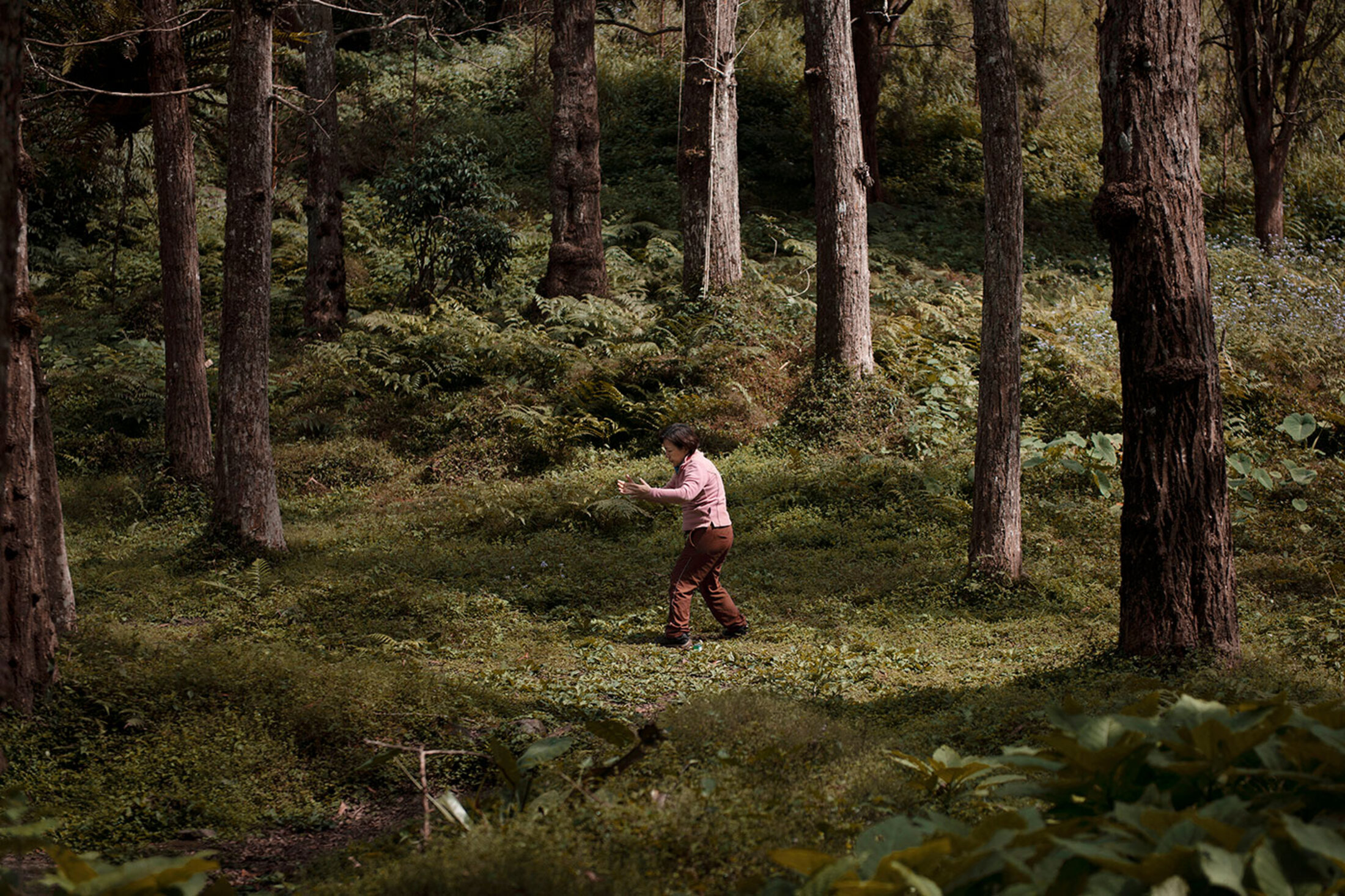 Le 9 février 2022. Une femme pratique le taï-chi-chuan dans la forêt de Xitou, au centre de Taïwan. Tout comme le qi gong, inspiré des gymnastiques taoïstes de longévité, lui aussi très populaire à Taïwan, il s’agit d’une discipline corporelle recommandée comme pilier du bien-être par la médecine traditionnelle chinoise. Cette gymnastique énergétique globale se décline en plusieurs styles : certaines écoles visent surtout la prise de conscience de soi par une approche intérieure, tandis que d’autres favorisent les techniques de combat. La plupart des écoles ont toutefois abandonné leur intention martiale au profit du développement de la souplesse et de l’éveil du «qi » (le «souffle », ou énergie vitale). Les personnes âgées à Taïwan accordent une importance capitale au maintien de leur corps à travers des pratiques de gymnastique quotidiennes, faisant des parcs de véritables lieux de vie commune.