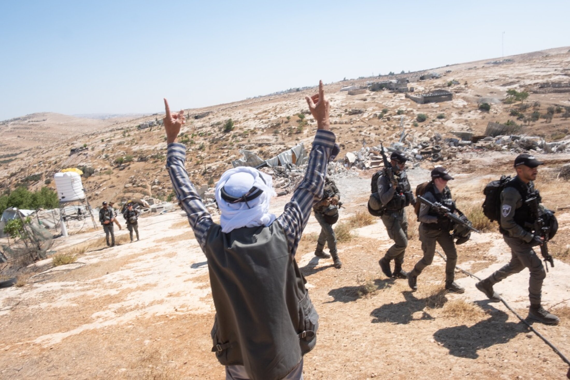 Sheab Al Botom, Cisjordanie occupée, 8 juillet 2024. Masafer Yatta se compose de 19 villages et hameaux palestiniens, dont huit sont sous la menace d’une destruction et d’un déplacement de population imminents. Ce jour-là, à Sheab Al Botom, cinq habitations ont été démolies, laissant plusieurs familles sans abri.