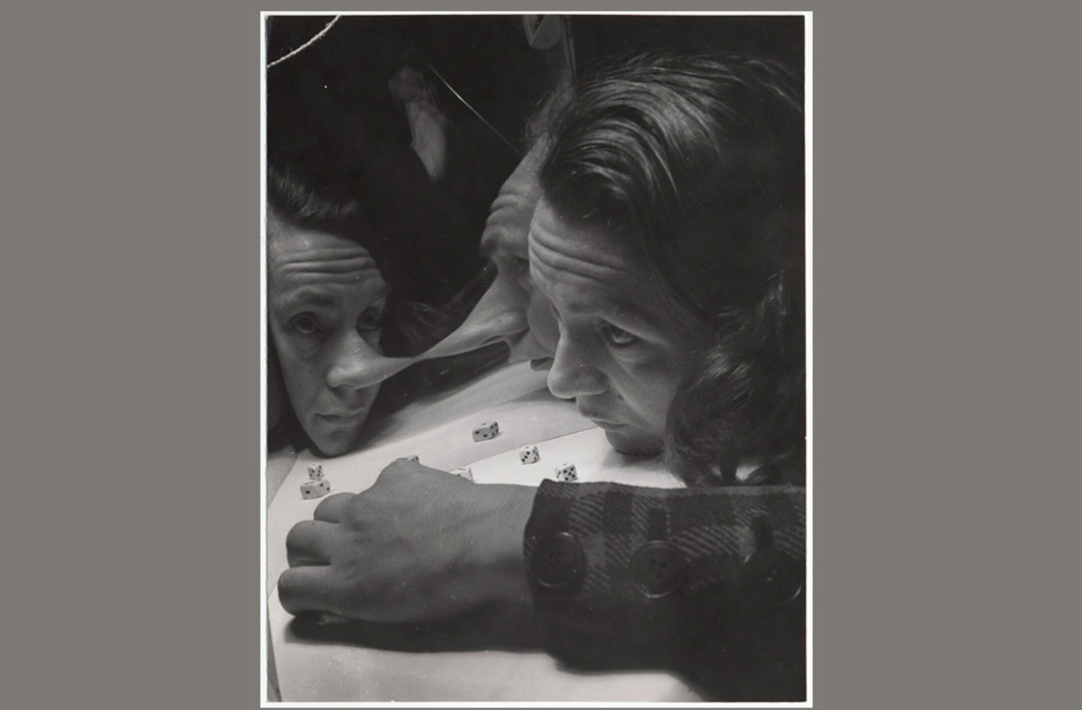 Anamorphose aux dés. Déformation obtenue à l'aide d'une plaque de chrome, vers 1935.