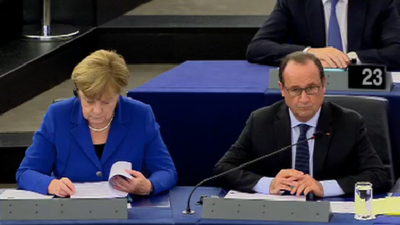 Devant le parlement européen, Angela Merkel et François Hollande ont défendu le renforcement de l'Union européenne. Mais sans faire de nouvelles propositions. Après un discours convenu, le président français a concentré les attaques de l'extrême droite.