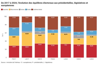 La compétition politique est toujours structurée en trois pôles, dont les poids respectifs évoluent. L’extrême droite est la grande gagnante, mais la gauche stagne au même niveau depuis 2017. Le danger pour elle : rester le « tiers exclu » du pouvoir.