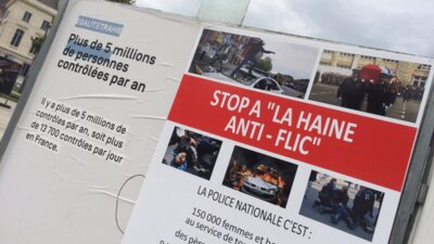 À Grenoble, une exposition sur les contrôles au faciès organisée par des habitants a été partiellement recouverte d’affiches par le syndicat policier Alliance, avant d’être vandalisée dans la nuit du 21 au 22 octobre.